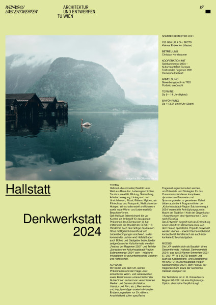 Das Kl. Entwerfen "Hallstatt - Denkwerkstatt 2024" knüpft an dem im Sommersemester 2020 abgehaltenen Bachelor- und Masterentwerfen "Hallstatt - Wohnen im Schaufenster" an, das sich mit den Spannungsfeldern des globalen Phänomens Overtourism und Wohnen im örtlichen und regionalen Kontext auseinandergesetzt und wesentliche Fragen zu Wohnbedürfnissen und Lebenswelten unterschiedlichster Nutzer*innengruppen an verschiedenen Orten in Hallstatt beleuchtet hat - vom leistbaren Wohnen für die Bewohner*innen bis zum Hotel für Touristen, Wohnraum für Schüler*innen bzw. hybriden Wohnmodellen.