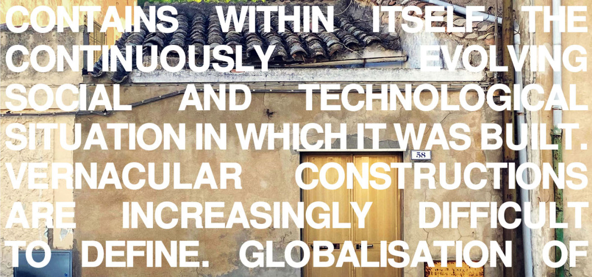 Die leitende These der Lehrveranstaltung ist, dass sogenannte autorenlose Architekturen sowohl in ihrer Funktionalität als auch Ästhetik die Materialisierung eines gemeinschaftlichen und kooperativen Konsenses sind. Welche räumlichen und programmatischen Anforderungen liegen den Ästhetiken der diversen vernakulären Architekturen zugrunde? Was geschieht mit einer ortsgebundenen und gemeinschaftlich geprägten Architektur, wenn sie auf ihre gestalterischen Elemente reduziert wird? Welche Rolle spielt der akademische Diskurs in der Wahrnehmung des vernakulären Bauens? Wie wurde historisch das Thema der autorenlosen Architektur thematisiert, kategorisiert und angeeignet? Im Rahmen dieses recherchebasierten Formates sollen eigenständige Forschungsfragen definiert und textlich und grafisch kritisch reflektiert werden.