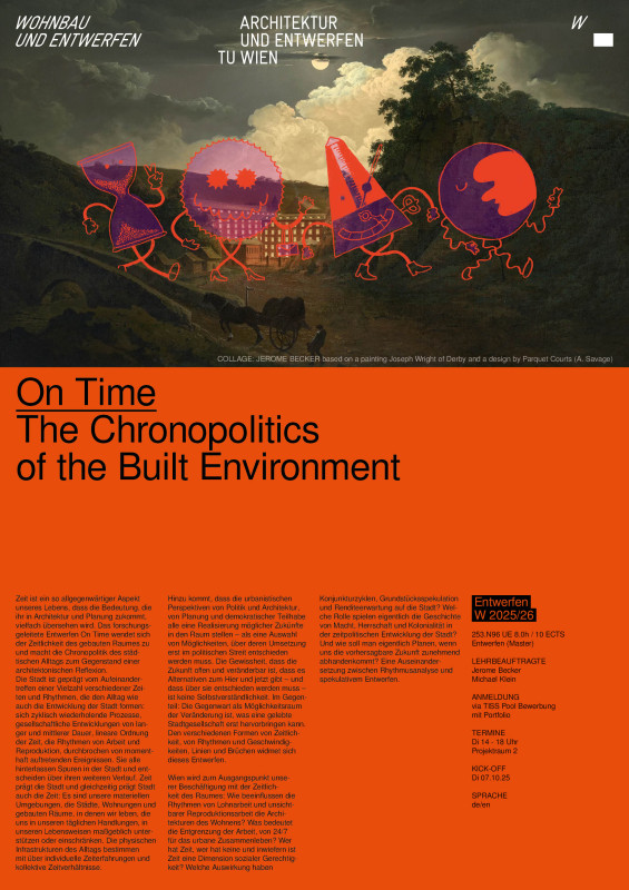 Wie beeinflussen die Rhythmen von Lohnarbeit und unsichtbarer Reproduktionsarbeit die Architekturen des Wohnens? Was bedeutet die Entgrenzung der Arbeit, von 24/7 für das urbane Zusammenleben? Wer hat Zeit, wer hat keine und inwiefern ist Zeit eine Dimension sozialer Gerechtigkeit? Welche Auswirkung haben Konjunkturzyklen, Grundstücksspekulation und Renditeerwartung auf die Stadt? Welche Rolle spielen eigentlich die Geschichte von Macht, Herrschaft und Kolonialität in der zeitpolitischen Entwicklung der Stadt? Und wie soll man eigentlich Planen, wenn uns die vorhersagbare Zukunft zunehmend abhandenkommt? Eine Auseinandersetzung zwischen Rhythmusanalyse und spekulativem Entwerfen.